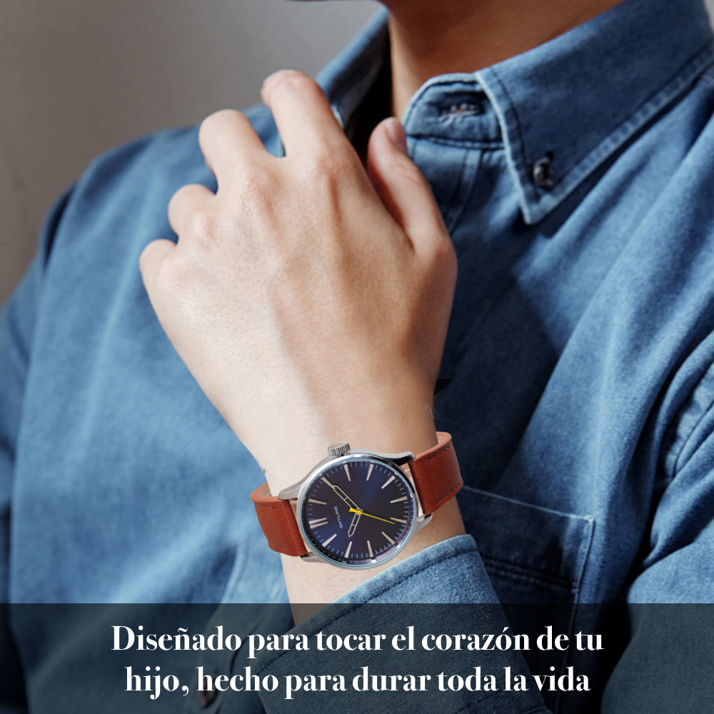 Un set pensado para ser mucho más que un accesorio. Incluye un reloj, una pulsera grabada y una carta que le recordará a tu hijo el amor que los une, haciendo de este detalle un recuerdo que perdurará en el tiempo.
